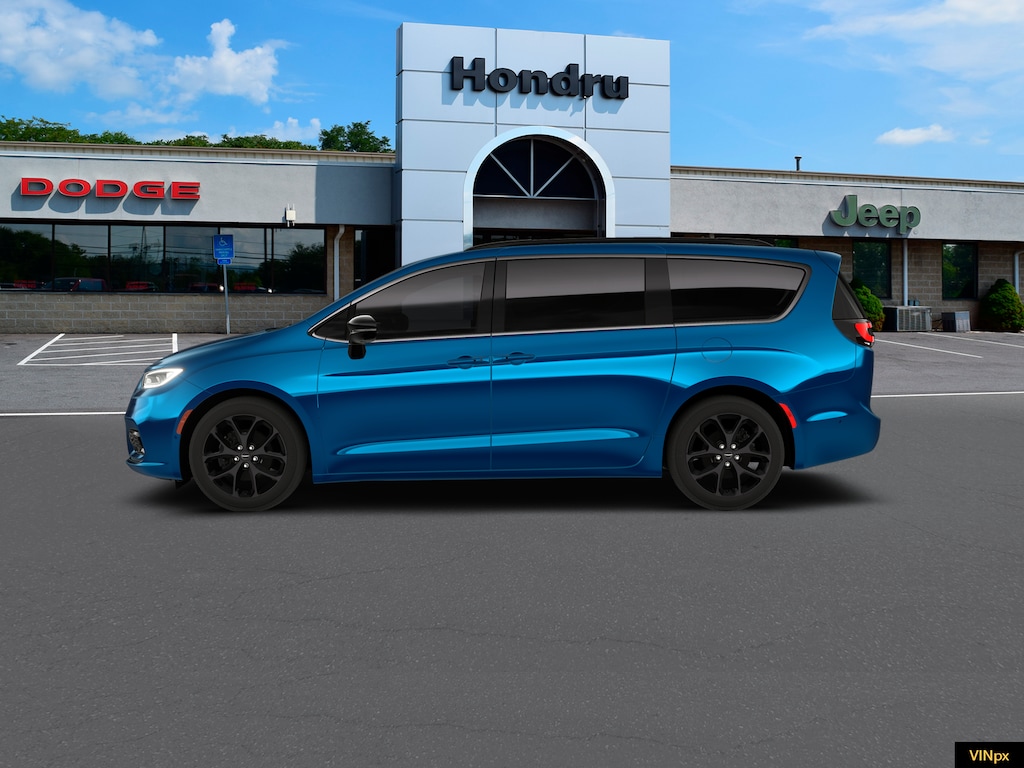 S Appearance Package: Black Day Light Opening Moldings; Caprice Leatherette with S Logo; Piano Black Interior Accents; Premium Fascia Upper/lower Grille with Black Surround; 245/50R20 BSW AS Self-Sealing Tires; Black Stow 'N Place Roof Rack; Premium Rear Fascia Black; 20 X 7.5 S-Model Aluminum Wheels Design 1; Anodized Ink Badging; S Badge. Safety Sphere: 360 Surround View Camera System; ParkSense Front/rear Park Assist with Stop. Quick Order Package 27L. 8 Passenger Seating. Hydro Blue Pearlcoat. **Equipment listed is based on original vehicle build and subject to change. Please confirm the accuracy of the included equipment by calling the dealer prior to purchase.**